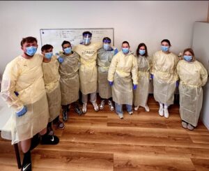 Im Fokus standen das korrekte An- und Auskleiden bei Tätigkeiten in Isolationszimmern – vom gründlichen Händewaschen bis zur fachgerechten Desinfektion – sowie grundlegende Verhaltensregeln zur Vermeidung von Infektionen im klinischen Umfeld.